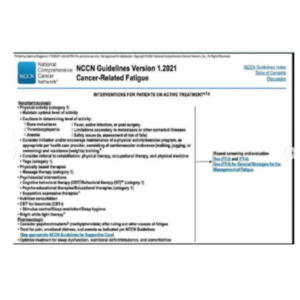 Segundo o NCCN (National Comprehensive Cancer Network), fadiga relacionada ao câncer é um sentimento subjetivo, persistente e angustiante de cansaço físico, emocional e/ou cognitivo ou exaustão relacionada ao câncer ou ao tratamento do câncer que não é proporcional à atividade recente e interfere no funcionamento normal.